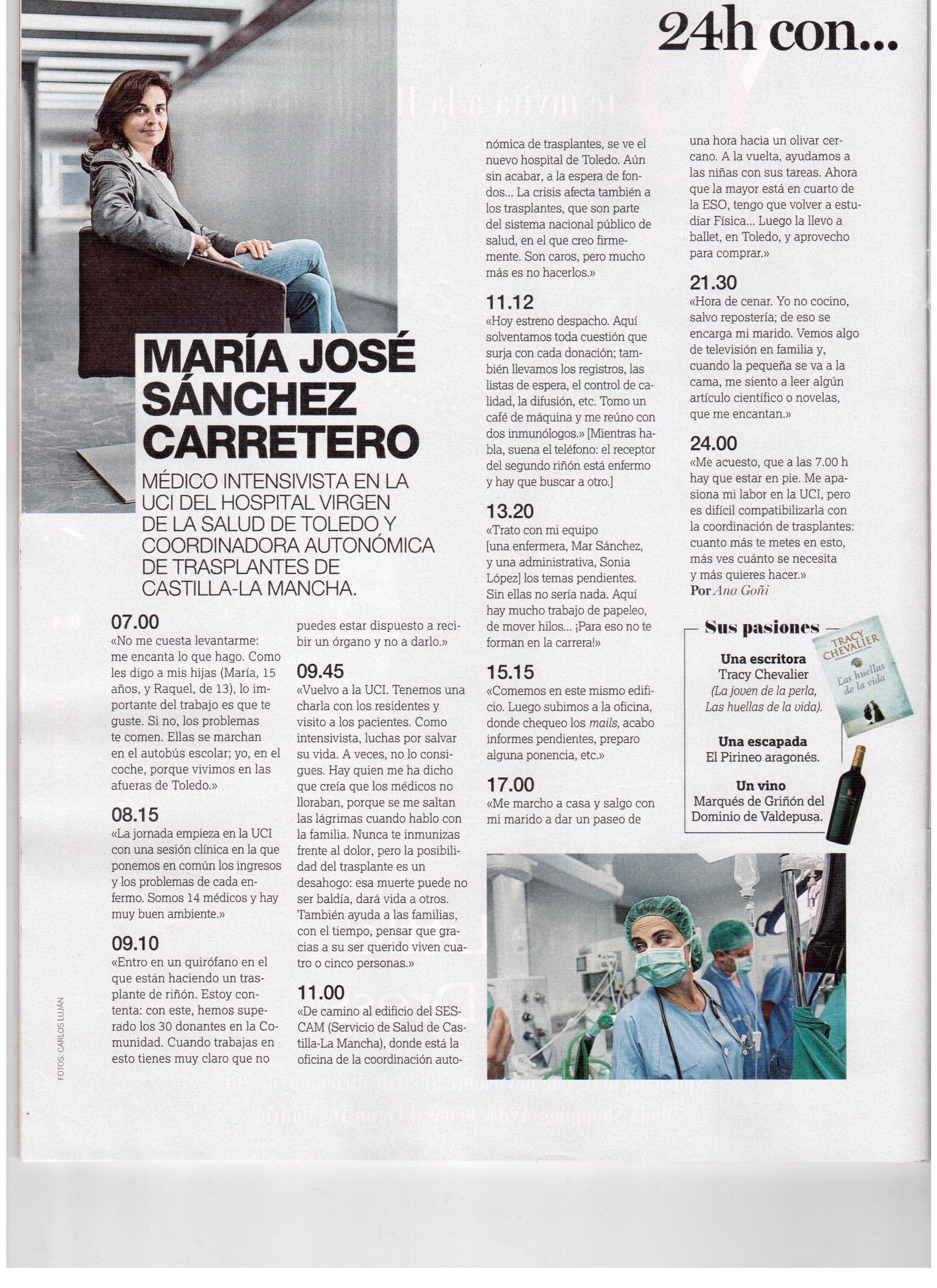 *El reportaje 24 horas con… Mª José Sánchez Carretero se publicó en la revista Yo Dona, de El Mundo, el 15 de diciembre de 2012.